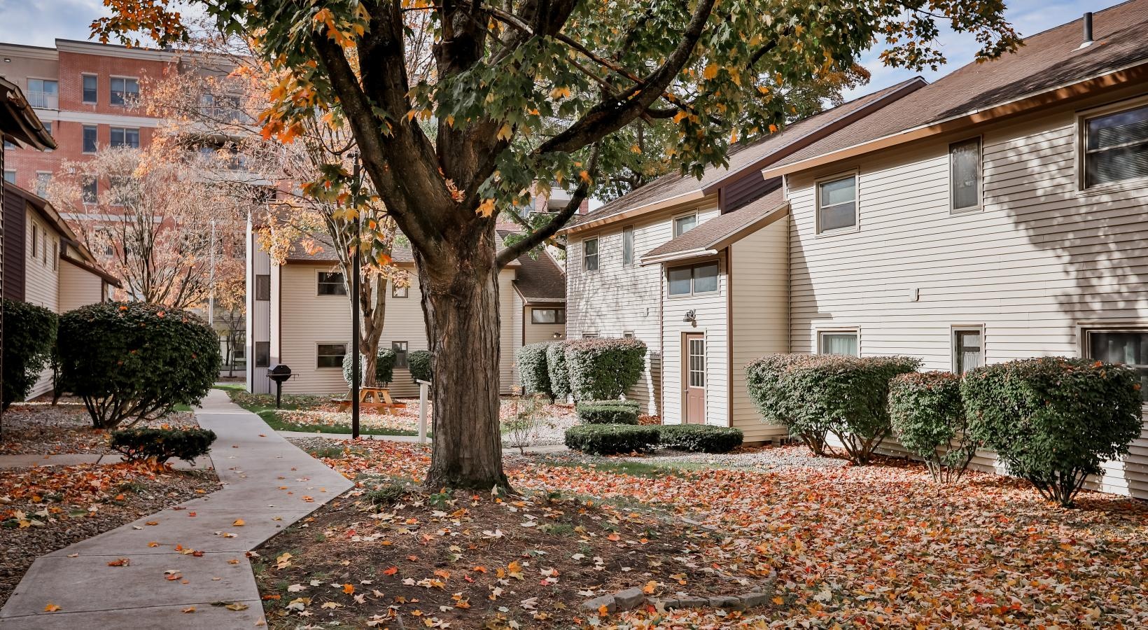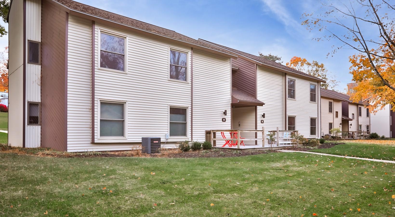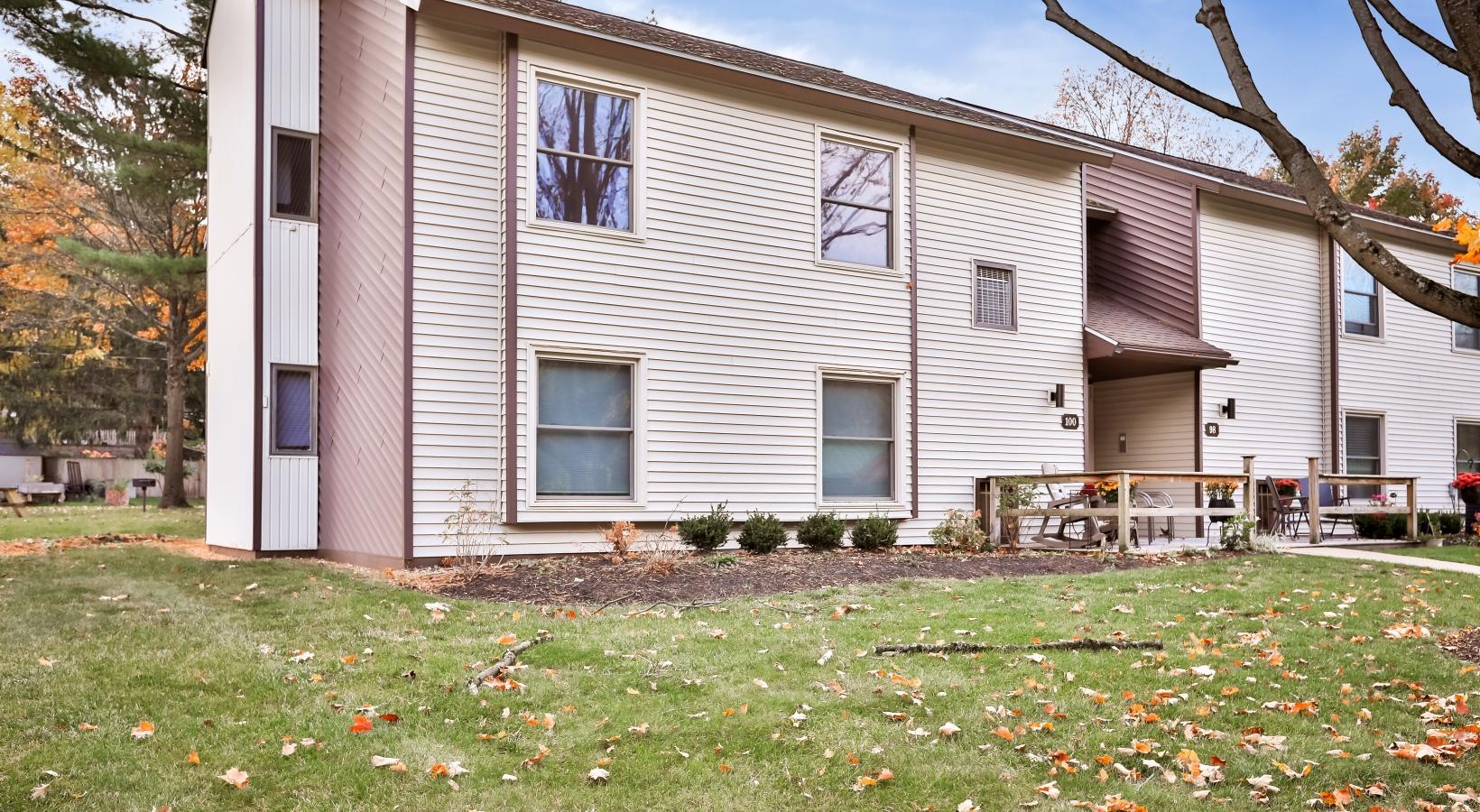 • an apartment building with a yard