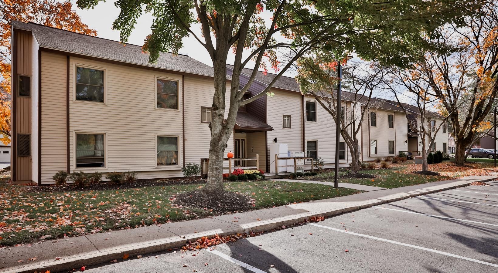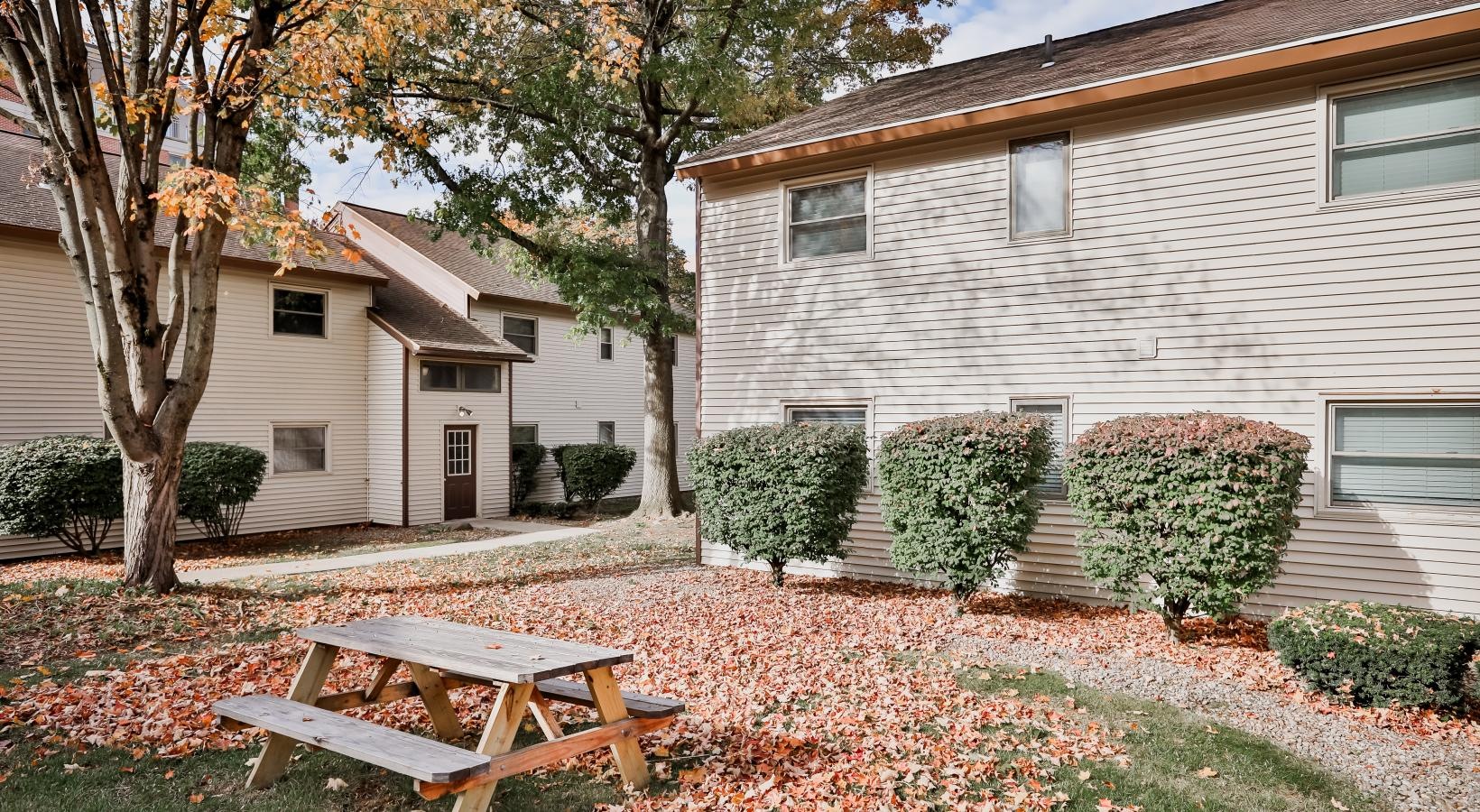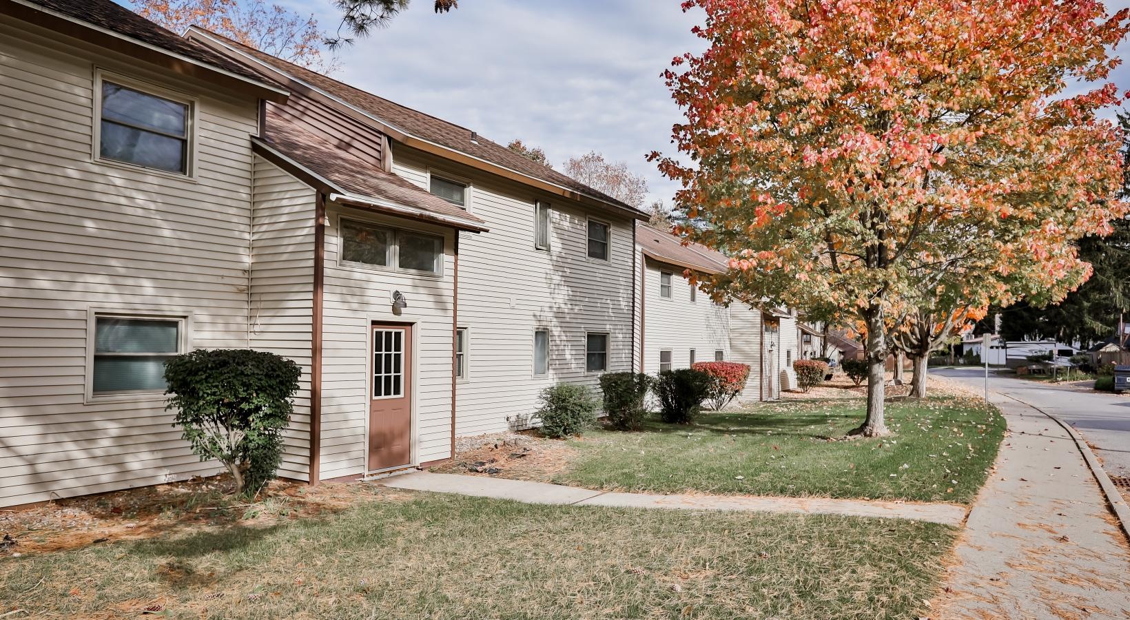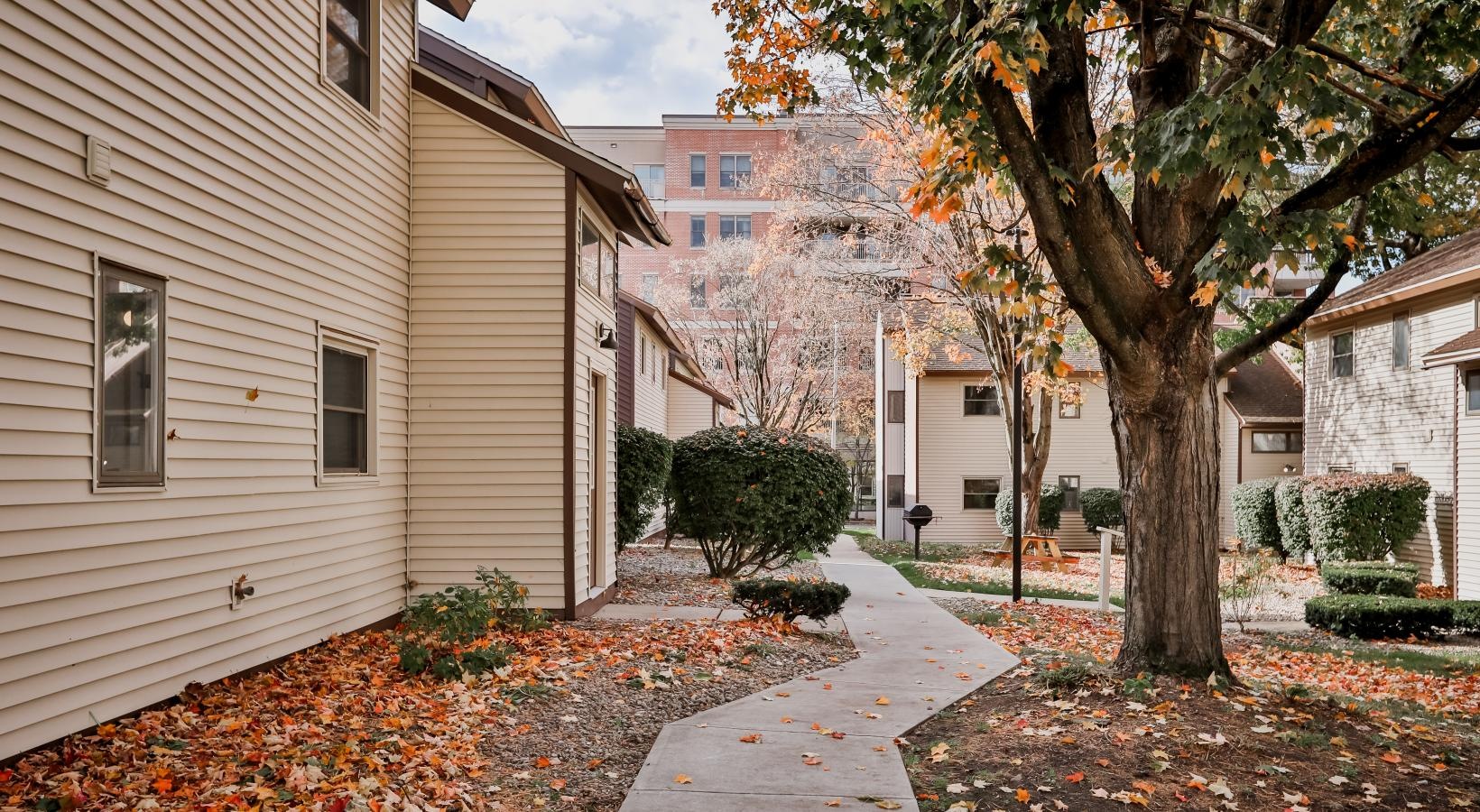 • an apartment building with a yard