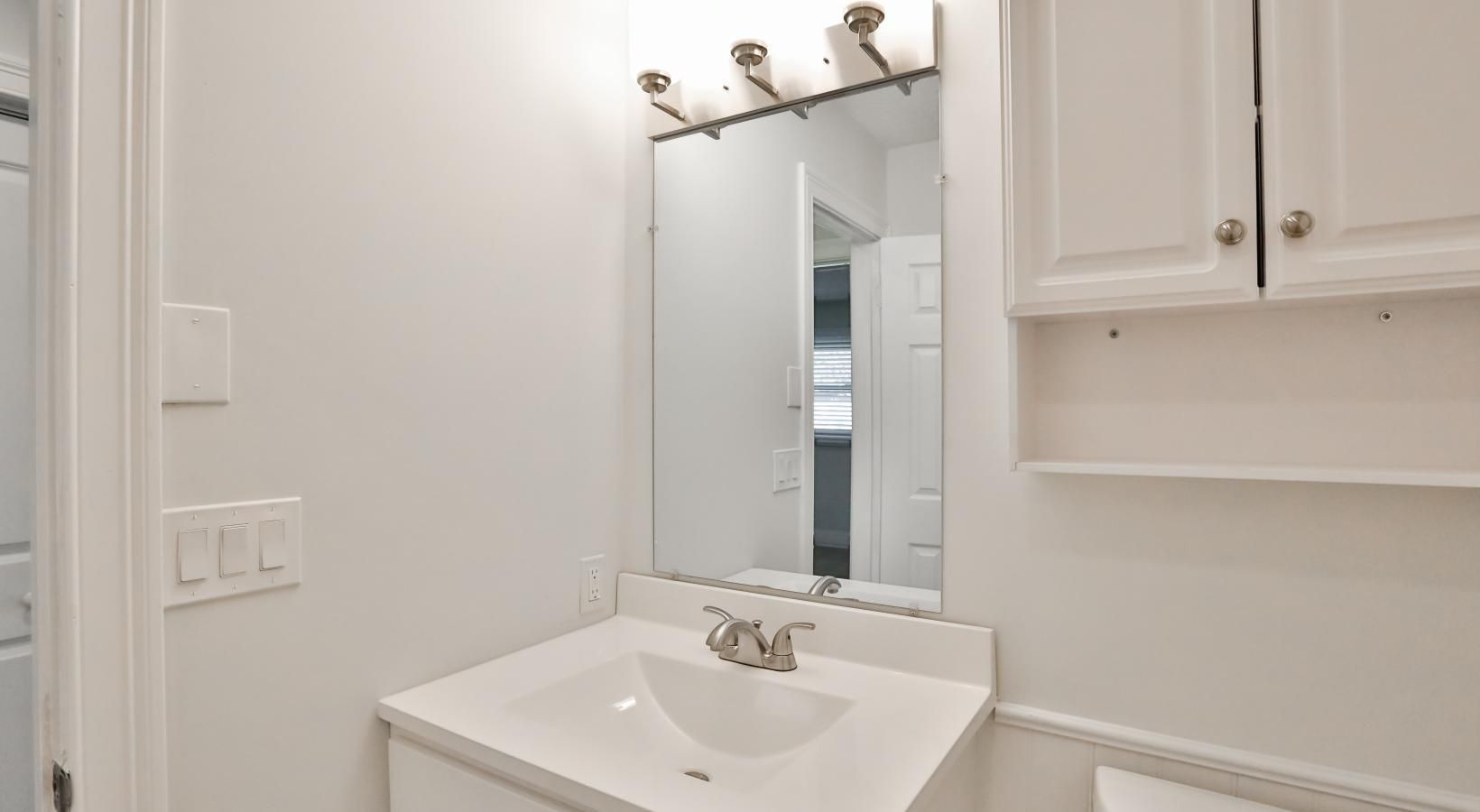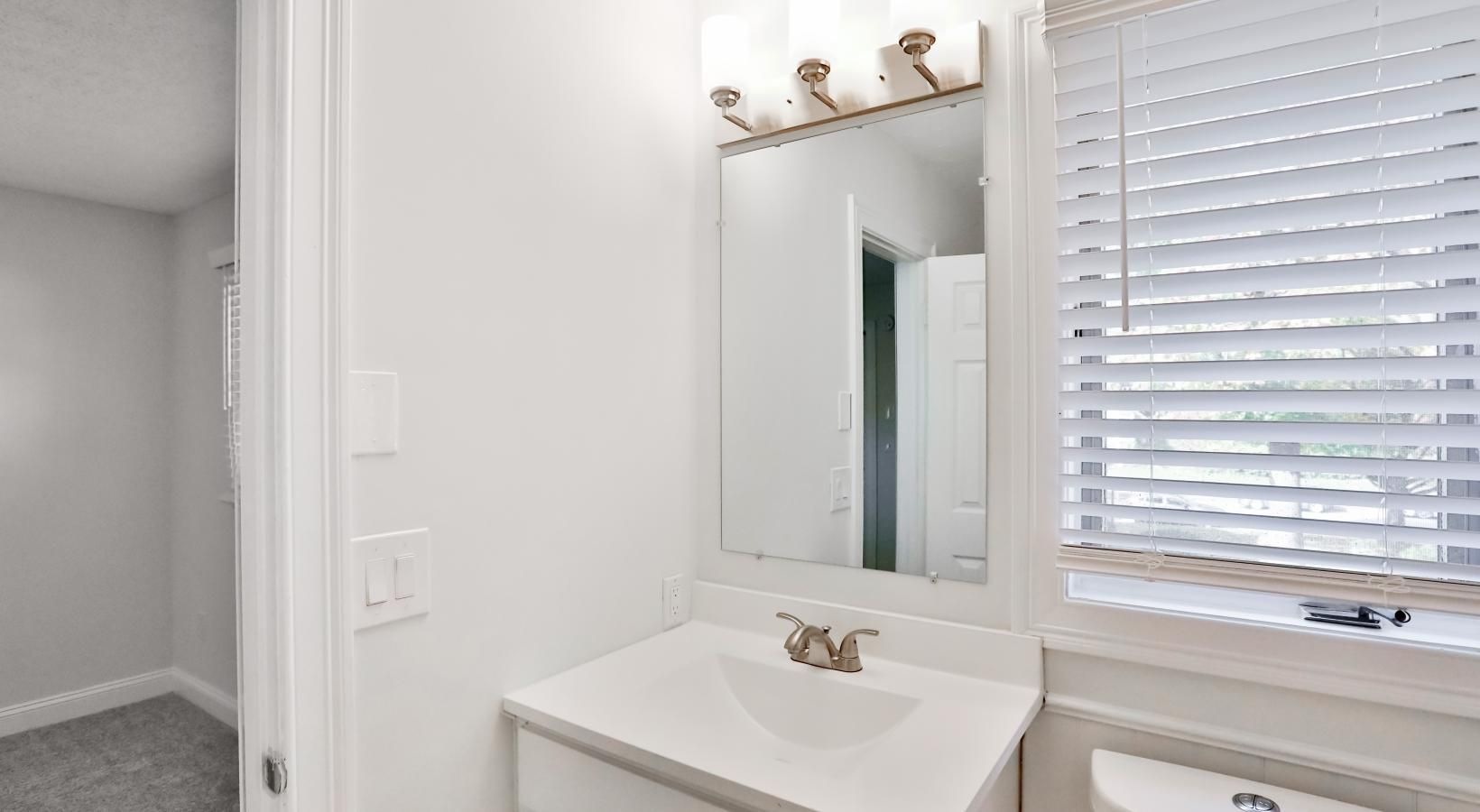 • a bathroom with a mirror and sink