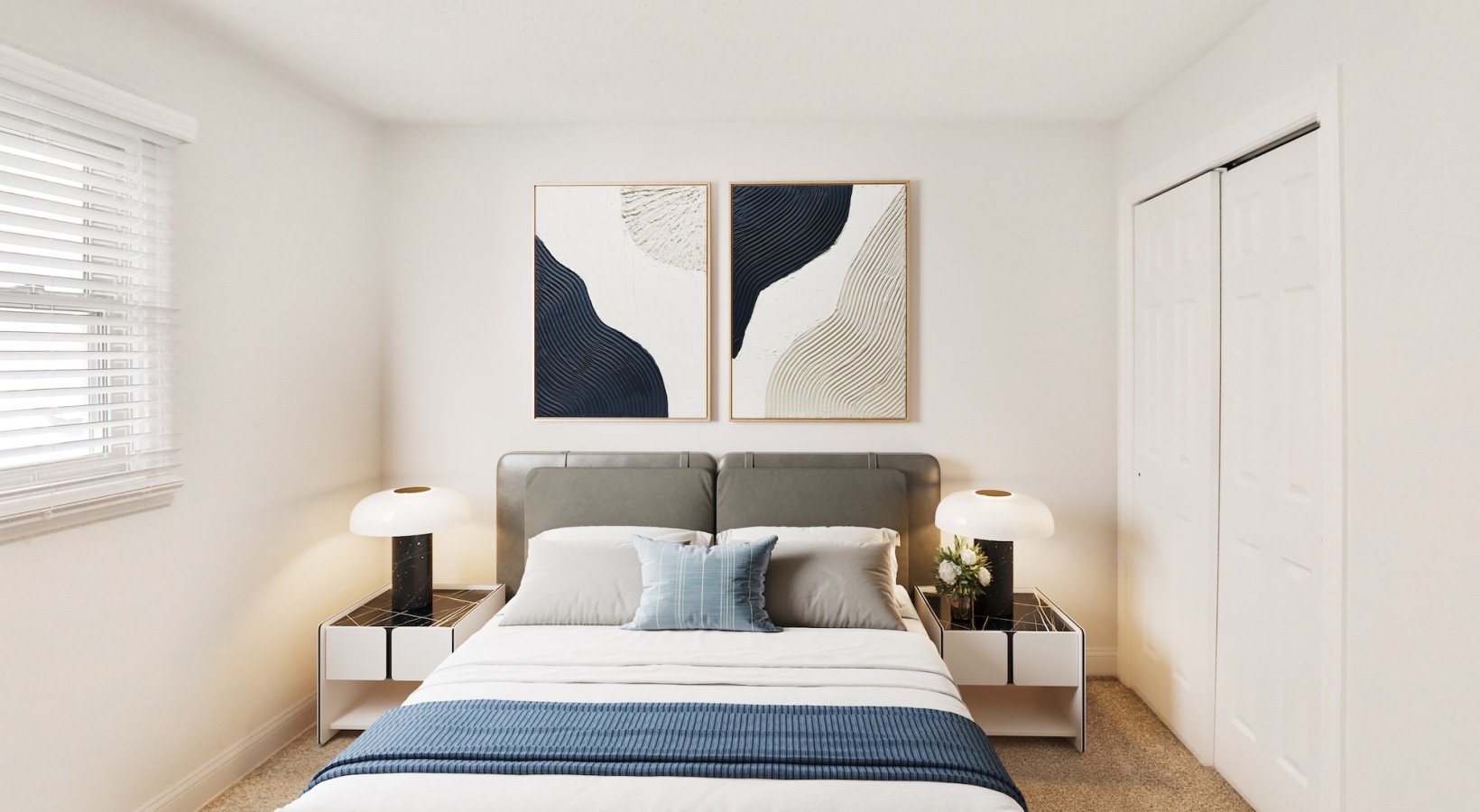• a bedroom with white doors