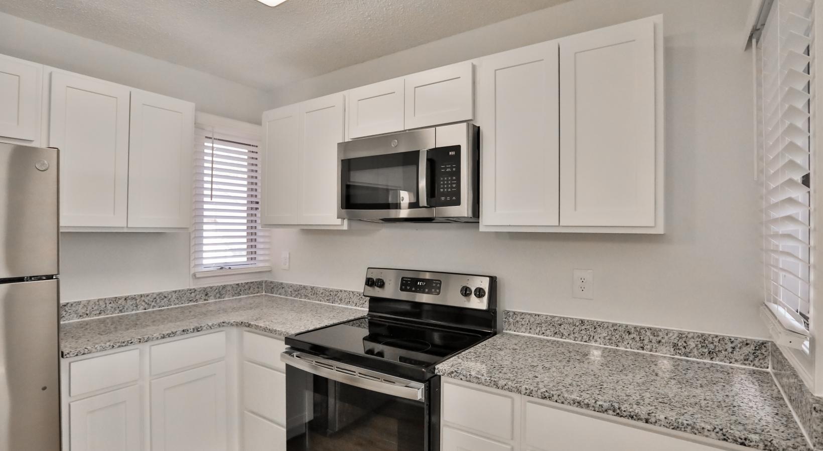 • a kitchen with white cabinets