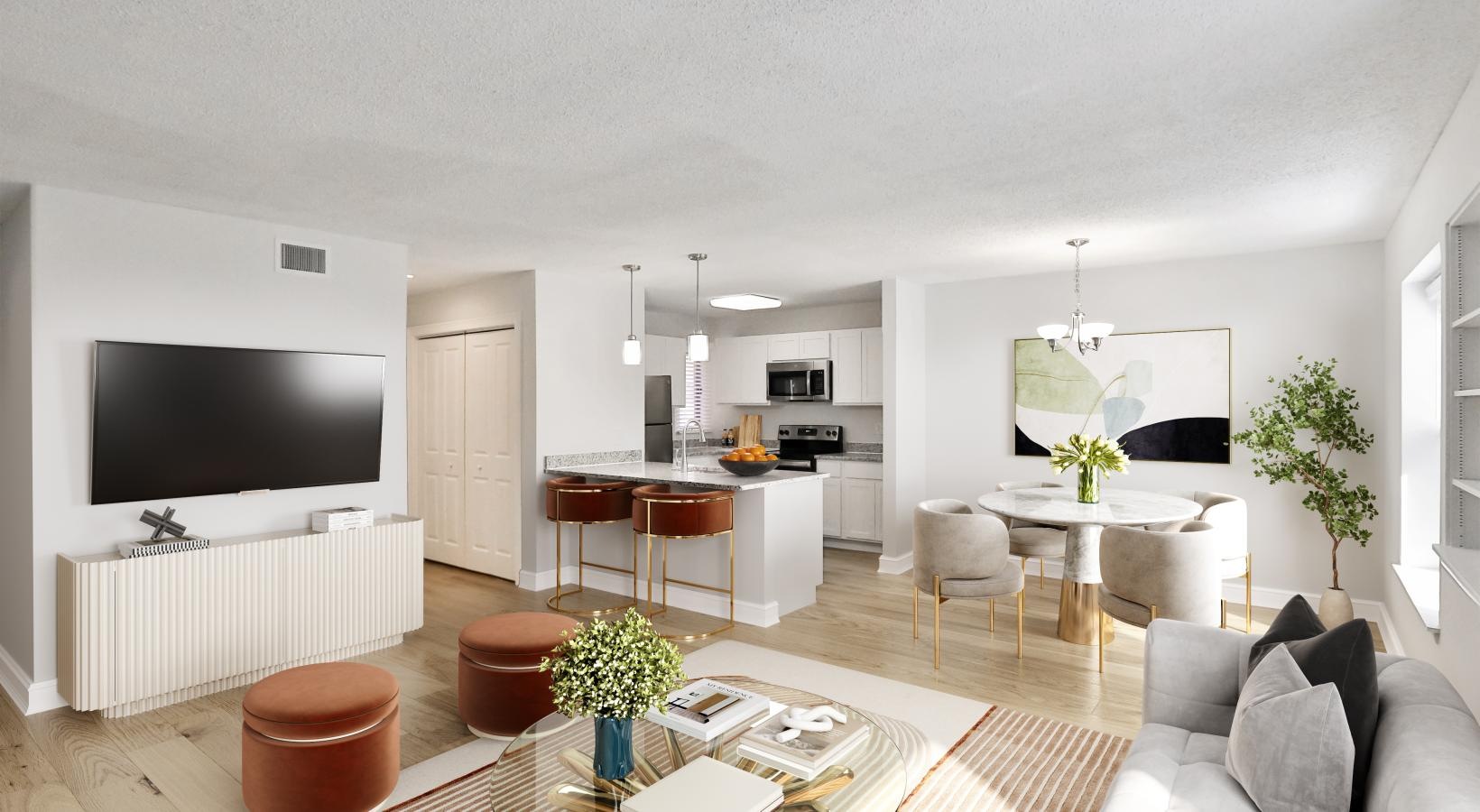 • a living room with a tv and couches